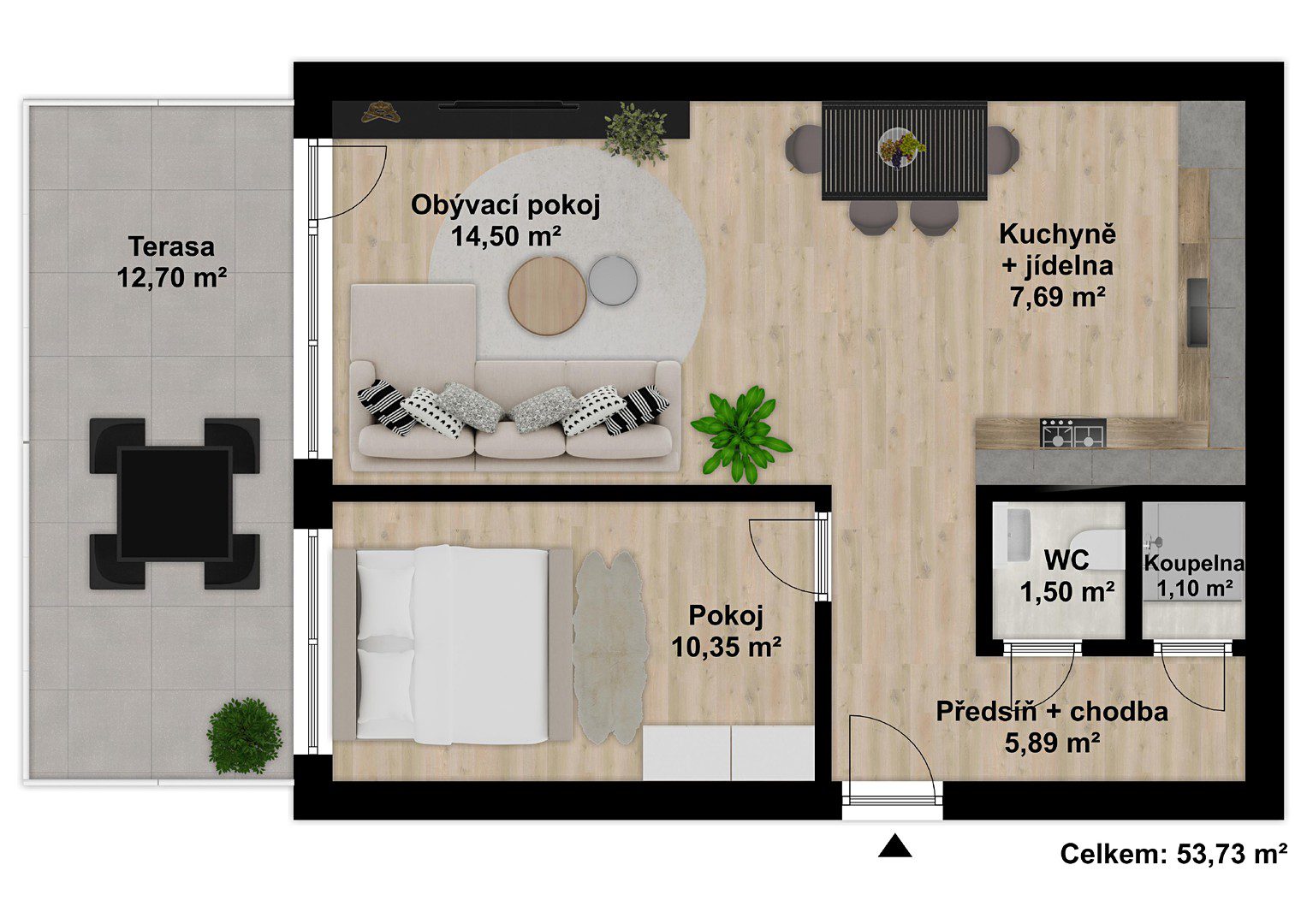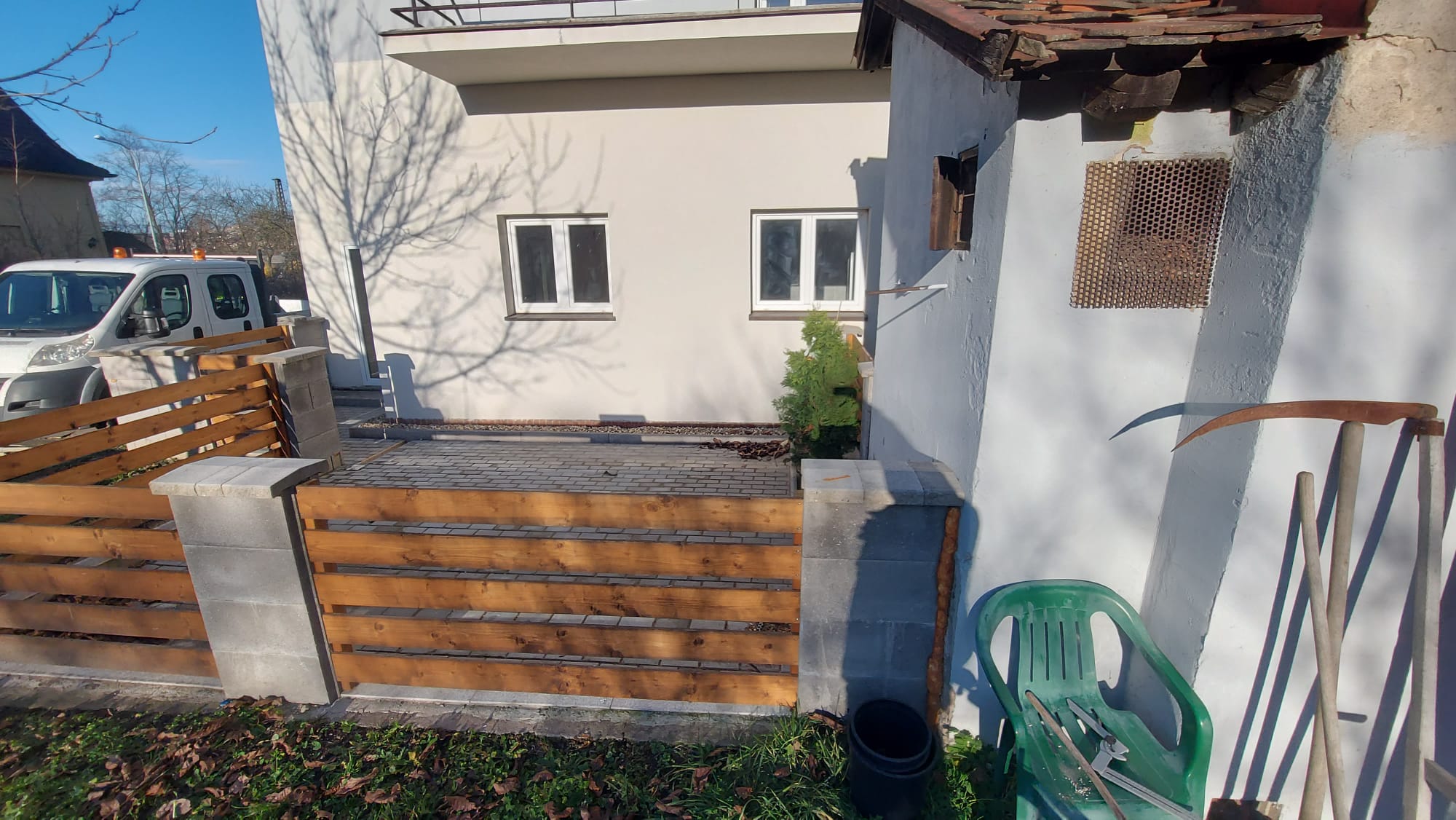 Další byt v oblasti, kde je prováděna oprava několika domů i bytů naší firmou. Zde modelový příklad zkulturnění dříve nevzhledného přízemního bytu s rumištěm před domem, které bylo přetvořeno ve venkovní terasu.