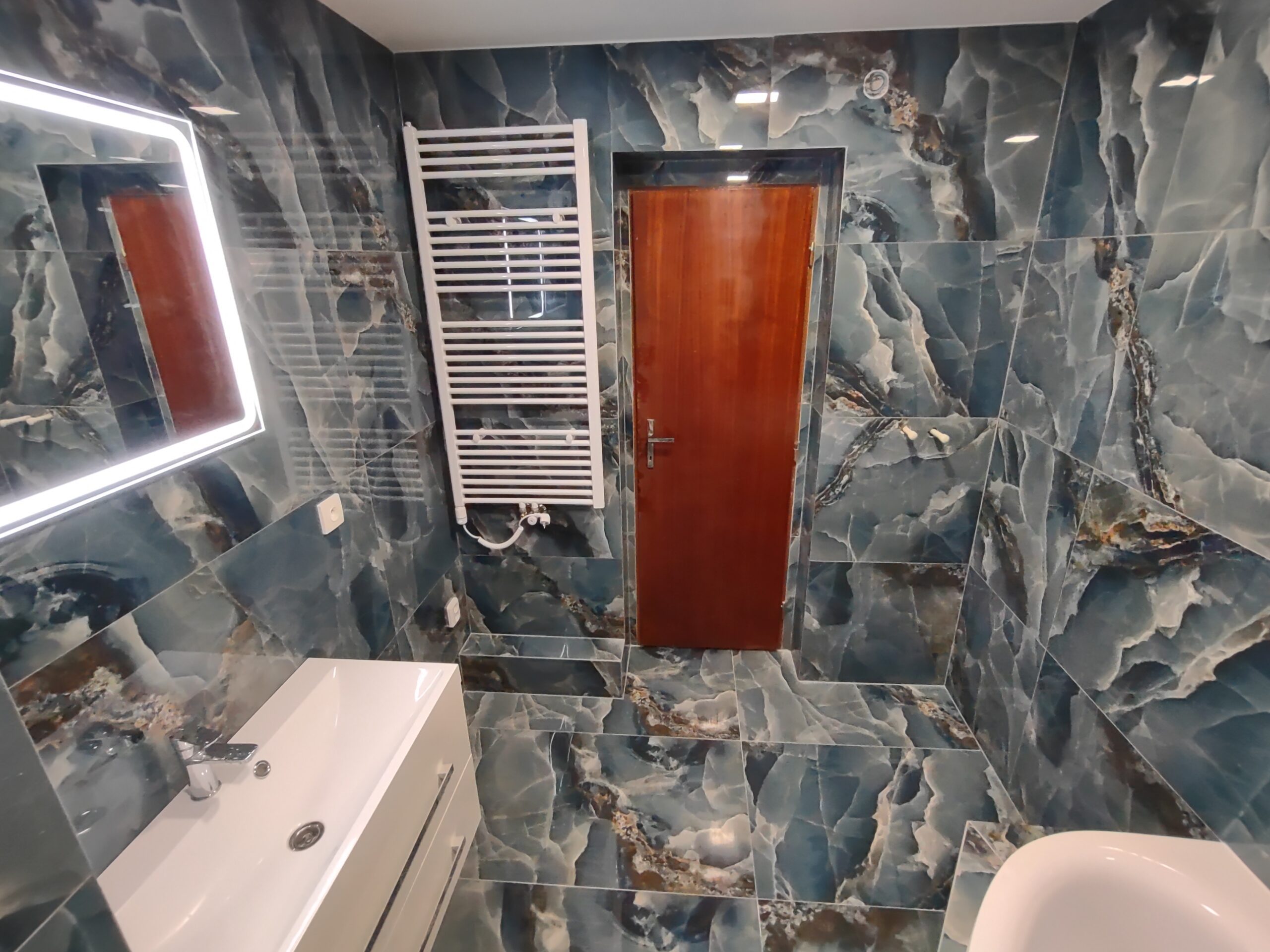 Klasická kompletní rekonstrukce v panelovém domě, od jádra přes kuchyni až po rozvody a podlahu. Nezůstal kámen na kameni, tedy panel na panelu. Podle představ objednatele dle architektonického návrhu.